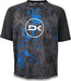 Dakine Kid's Prodigy Short Sleeve Jersey in color Cyan Scribble, as pictured. Size is Children's 8. Chest 29.5-31" Note: Position of pattern varies.